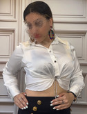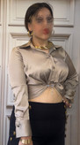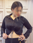 شومیز استین بلند ساتن گره دار با بند سوارسکی