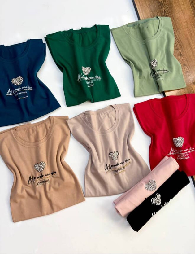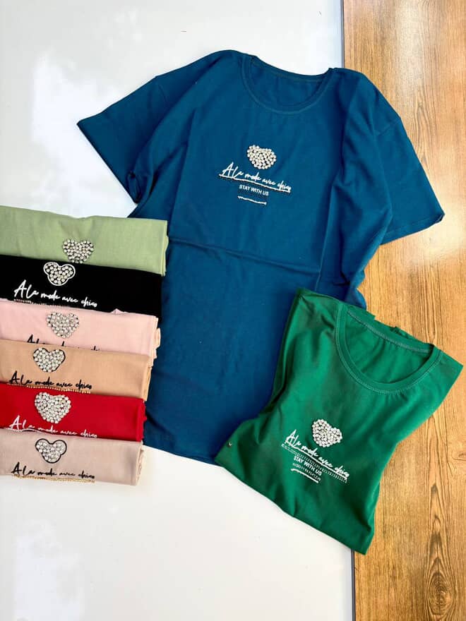 تیشرت ویسکوز پنبه با طرح نگین مینیمال